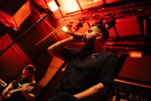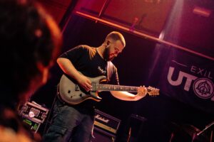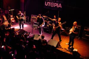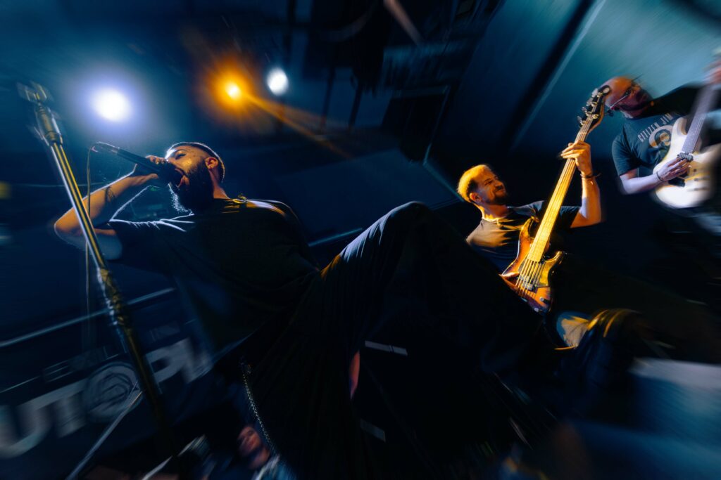 Πρώτοι στη σκηνή οι δικοί μας Exile in Utopia. Μια μπάντα που παρακολουθώ χρόνια και, ίσως επειδή είμαι κι εγώ σε μπάντα, πάντα ένιωθα ότι κάπως οι πορείες μας εξελίσσονται παράλληλα — χωρίς να έχουμε συναντηθεί ποτέ. Και όμως, βρισκόμαστε στο ίδιο σημείο: με το ίδιο πάθος όπως στην πρώτη πρόβα.