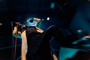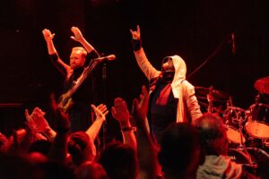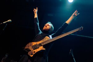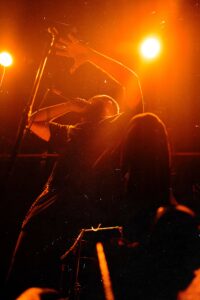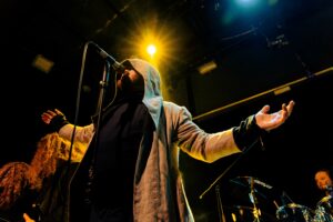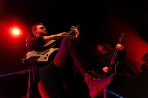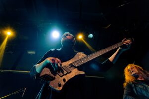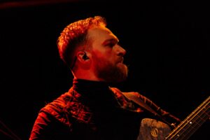 Εκεί που πολλές metal μπάντες υπερέχουν στα βρώμικα και υστερούν στα καθαρά, εδώ συμβαίνει το αντίθετο: τα καθαρά φωνητικά του είναι συγκλονιστικά. Έχει τεχνική, ηχόχρωμα και συναίσθημα. Τα growls και τα pig squeals έκαναν το venue να τρίζει — αλλά τα καθαρά ήταν αυτά που πραγματικά λύγιζαν τον κόσμο.
