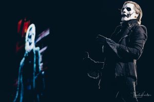 Τα σκηνικά σχεδόν έτοιμα, εκκλησιαστική μουσική υπόκρουση, κι όλοι μπαίνουν στο ανίερο κλίμα. Όταν βγαίνουν οι Ghost, ο κόσμος τρελαίνεται. Φοβερή σκηνική παρουσία, ο Papa Emeritus επικοινωνεί με το κοινό αδιαλείπτως. Δηλώνει χαρούμενος που εκείνος και τα Nameless Ghouls βρίσκονται ξανά στην Αθήνα μετά από πολλά χρόνια. Ο κιθαρίστας Nameless Ghoul Sodo έκλεψε την παράσταση με τα solos του. Όλοι είχαν απίστευτη ενέργεια.